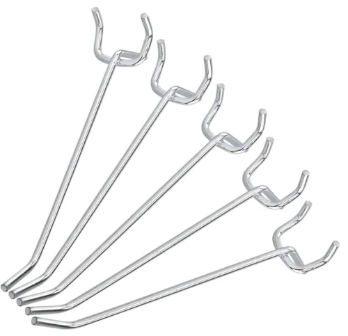 This product is ideal for organizing storage spaces with peg boards, allowing for easy hanging and display of items.