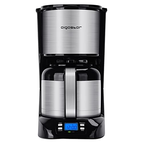 The 800W Aigostar thermal coffee maker has a large 40oz capacity and can brew up to 8 cups of coffee at once, making it perfect for a small family. The thermal carafe comes with a stylish handle and a stainless steel body that perfectly blends with your kitchen appliances. The coffee pot is made of stainless steel and is BPA-free, ensuring that the coffee you get will be clean and good-tasting.