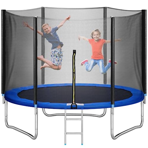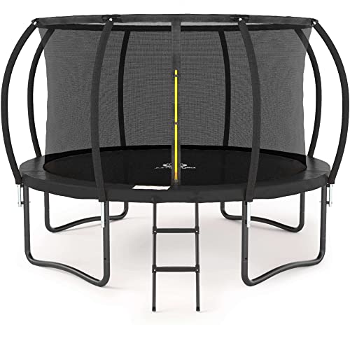 This trampoline set is a super value for families who want to add some outdoor fun to their backyard. It comes with an enclosure, waterproof jump mat, and ladder, making it a complete package. With a height of 10ft and a maximum capacity of 330lbs, it can accommodate jumpers of all sizes.