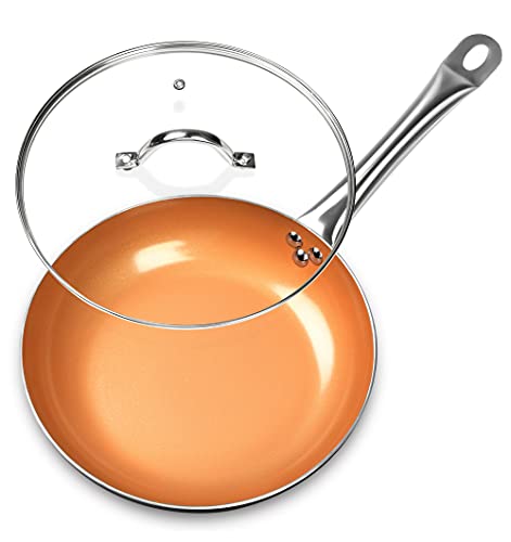 9. Copper Chef 10 Inch Round Frying Pan With Lid: This skillet is made with a ceramic nonstick coating infused with copper for even heat distribution. It also comes with a tempered glass lid and a stainless steel handle.