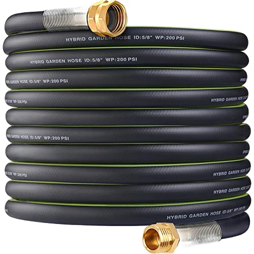 The 2023 upgraded garden hose is the perfect tool for all your watering needs. Made of a 3-layer reinforced structure rubber, this hose is extremely tough and can easily bypass trees, grass and walls. Its 3/4 inch 100% solid brass connector prevents breakage and leakage, making it functional, lightweight and flexible. The hose will never kink, twist, leak, burst or get tangled up while in use, thanks to its anti-kink technology. With a 5/8 inch standard inner diameter, non-twist innovative rubber and polymer mixed materials, it offers unobstructed water flow, allowing you to complete watering, car washing, yard washing and other watering work easily.