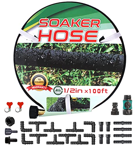 Ideal for watering garden beds and saving water with a 100 ft heavy duty soaker hose with drip irrigation.
