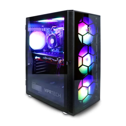 Introducing the ViprTech High-End Gaming PC, a budget-friendly option that boasts high-quality specifications and incredible features. This PC is powered by an Intel i5-4570 processor with a 3.8GHz Turbo boost and features an NVIDIA GeForce GTX 1060 6GB graphics card, 16GB of RAM, and a 1TB hard drive. It runs on Genuine Windows 10 Pro and features an RGB lighting-enabled case, perfect for showcasing your internals.