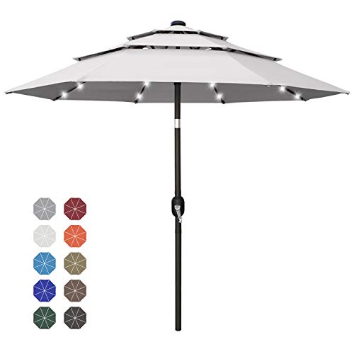 6. Abccanopy Solar Led Patio Umbrellas 3-Tiers 11ft (Light Gray)
