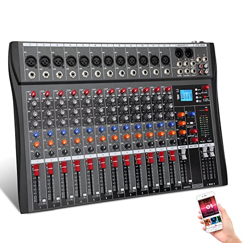 8. Mix12 Pro Audio Mixer: 12-Channel Bluetooth Soundboard.