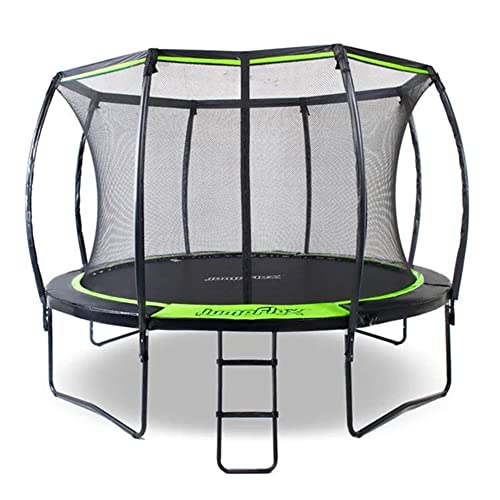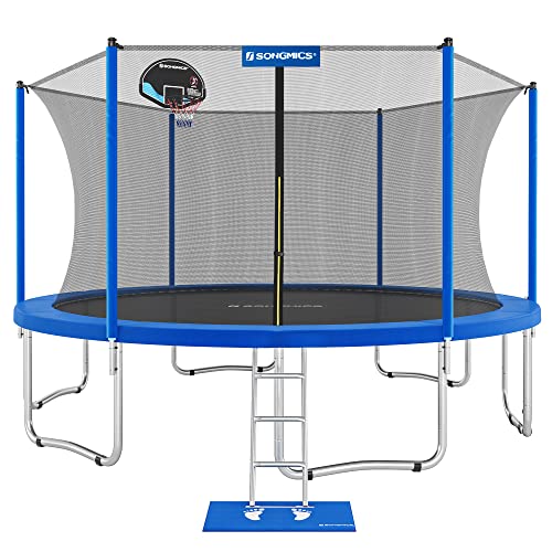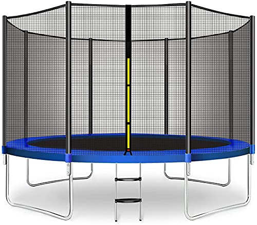 The Zupapa 12ft TUV Approved Trampoline is another great option, known for its heavy-duty galvanized steel frame and high weight capacity. It also boasts a unique design with non-slip ladders and a UV-resistant safety pad.