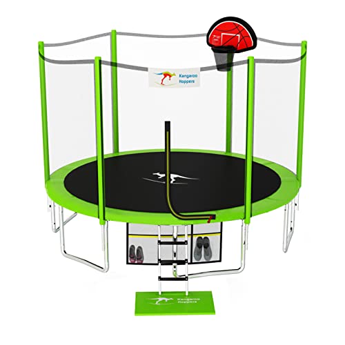 The Kangaroo Hoppers Trampoline is a perfect gift for kids who love to have fun outdoors. It is available in three different sizes (12FT/14FT/15FT) and three vibrant colors (apple green, blue, and pink) to suit individual preferences. The new generation trampoline comes with a basketball hoop that doubles the pleasure of backyard playtime.