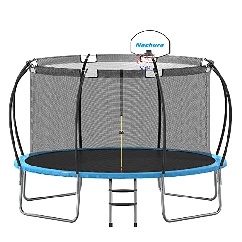 The Upper Bounce 12ft Trampoline with Enclosure is a reliable choice for families, with a strong frame and safety enclosure net. It also includes a premium jumping mat and a weather-resistant foam pad for added durability.
