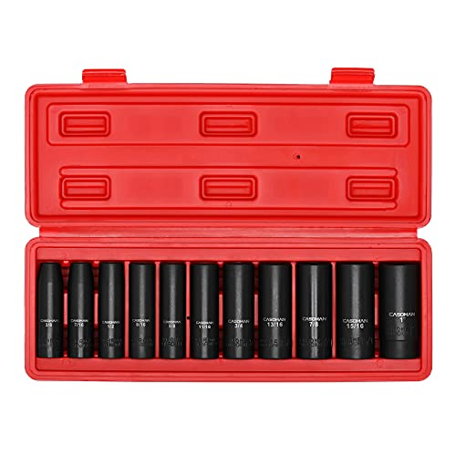6. Casoman 11 Pieces 1/2-Inch Drive Deep Impact Socket Set, Sae, 6-Point, 3/8-Inch To 1-Inch