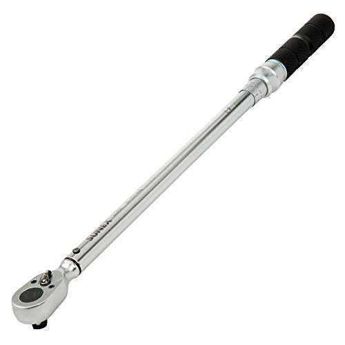 The Durable Ratchet Head comes with two accessories: a 1/2" Drive 5" long Extension Bar and a 1/2" Drive to 3/8" Drive Reducer, making it versatile and suitable for a range of torque applications. The tool is simple and reliable to use, and a "click" sound indicates that the preset torque value is reached. Once you hear and feel the "click," you should stop applying force.