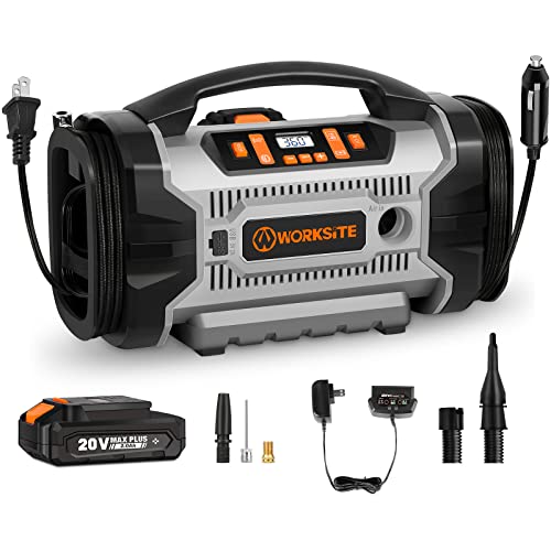 The WORKSITE tire inflator is a versatile and convenient tool that comes with three different power options – 110V AC, 12V DC, and a 20V battery. This triple power supply allows for easy and efficient inflation of all types of tires and inflatables, both at home and outdoors.