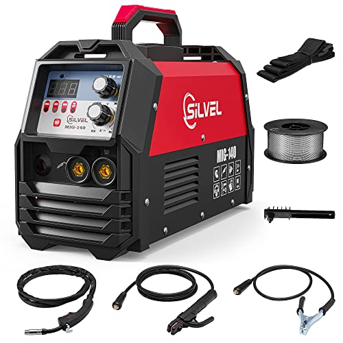 The SILVEL MIG Welder 140 Amp is a rugged and durable single-phase welding machine that is suitable for flux (no gas) welding. It has an adjustable power setting with a welding current of 80-140A and a no-load voltage of 23.5V, all while being lightweight at only 14.77 lbs.