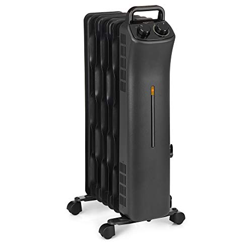 7. Amazon Basics Portable Radiator Heater With 7 Wavy Fins, Manual Control, Black, 1500w