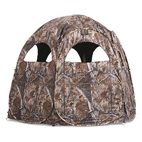 The Guide Gear Super Magnum Hunting Ground Blind also boasts great sightlines with six large zippered windows that offer maximum visibility, allowing you to shoot from any side. This makes it ideal for deer hunting, antelope, elk, and more.