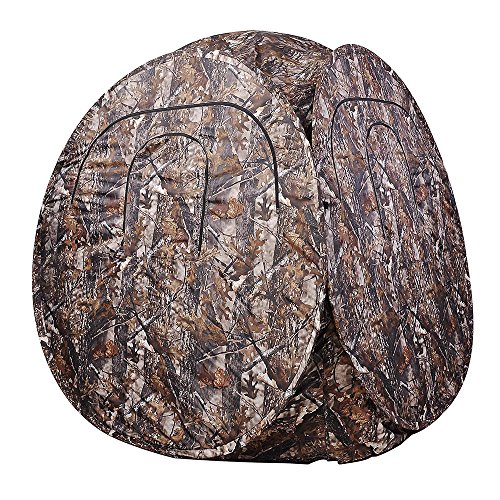 The product is ideal for camouflage hunting and provides a portable ground blind tent that accommodates up to 3 people.