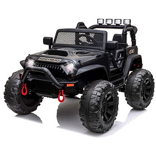 Equipped with a 24V 7Ah rechargeable battery and 4pcs powerful 24V #550 motors, this 2-seater kids toy car can reach a maximum speed of up to 5mph. The EVA tires wheels provide excellent traction and absorb shocks and vibrations caused by bumps and potholes. This 4-wheel drive kids toy car is perfect for adventurous kids who love to explore and go on off-road adventures.