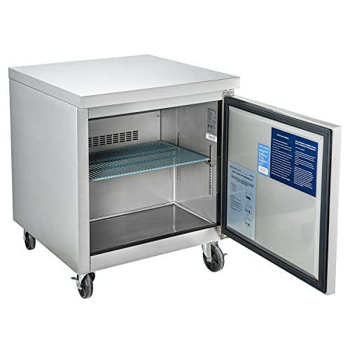 It is ideal for commercial restaurant use, with a stainless steel construction and 7 cubic feet of storage space.