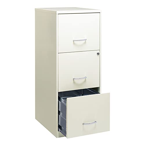 4. 18" Deep 3 Drawer Metal Vertical File Cabinet, Letter Size, Locking, Home Office, In Pearl White