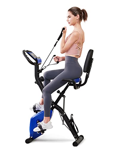 The 3 in 1 Exercise Bike with Arm Resistance Bands is a versatile and compact workout machine that lets you exercise your upper and lower body simultaneously. It comes with resistive bands that you can use to target your arms and legs, making it an ideal choice for those who want to get a full-body workout without having to use multiple machines.