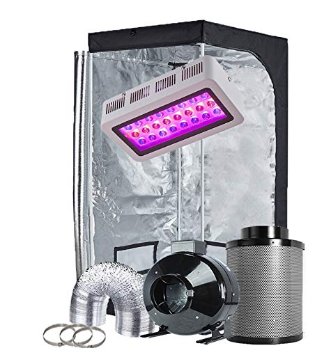 This Full Setup Kit includes LED grow light, grow tent, inline duct fan, carbon filter, 25ft length flex ducting, and duct clamps. It is a comprehensive package that is perfect for beginners and provides everything you need for indoor gardening. It is suitable for various stages of plant growing and features a user-friendly "Full Spectrum" design, allowing for easy growth of plants in any growth cycle required like germination, seedling, veg, and flower. With this setup, you can expect a wonderful growth experience that is efficient and effective.