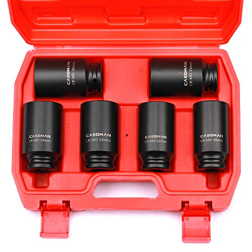 The socket set is ideal for removing spindle axle nuts of various sizes with impact wrenches.