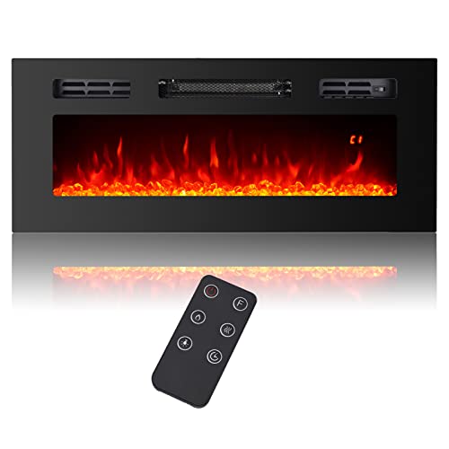 Introducing the 36" Built-In Electric Fireplace, the perfect addition to any home looking for warmth and style. This plug-in electric fireplace (110-120V; 750W/1500W) can be used with or without heat, making it an ideal choice for year-round use. The included remote control and built-in control panel allow for easy operation, while the timing setting function allows for customizable working hours of the electric fireplace with a timing range of 1H – 9H. You can easily set the temperature to your desired range, between 0°F – 65°F – 82°F, providing up to 5000 BTUs of supplemental heat to warm areas up to 400 square feet.