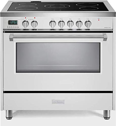 This all-electric range oven boasts a gorgeous and unique design made in Italy. The black ceramic glass cooktop and stainless steel construction make it a durable and corrosion-resistant addition to any kitchen.