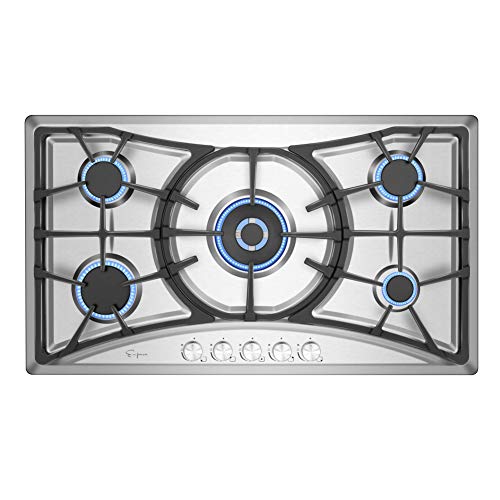 9. Empava 36 Inch Gas Stove Cooktop 5 Italy Sabaf Sealed Burners Ng/lpg Convertible In Stainless Steel