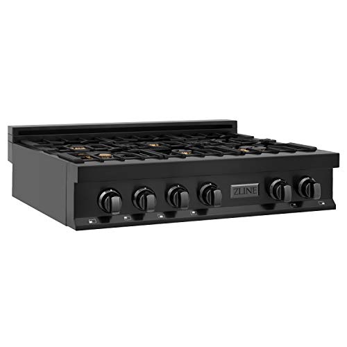 3. Zline 36 In. Porcelain Rangetop In Black Stainless Steel With 6 Gas Brass Burners (Rtb-Br-36)
