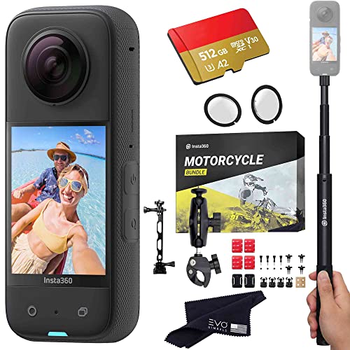 The Insta360 X3 comes with everything you need to get started, including a charge cable, protective pouch, lens cloth, user guide, motorcycle bundle, invisible selfie stick, lens cap, 128GB card, and EVO Gimbals Lens cloth. The camera is designed to be handheld, so you can take it with you everywhere you go.
