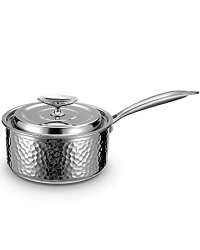 The DEADULAS Uncoated Stainless Steel Saucepans are a must-have for any kitchen. These triply hammered copper saucepans feature an aluminum core between stainless steel layers and copper, making them both durable and efficient in heating food quickly and evenly. With the physical anti-stick technology, these uncoated non-stick pans provide a healthier cooking option for you and your family.