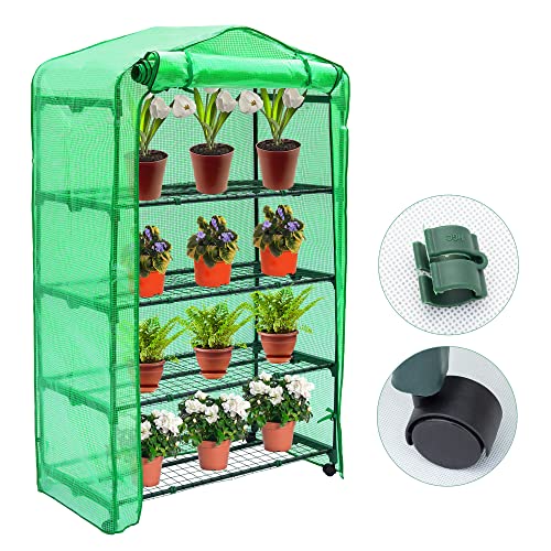 With four spacious shelves, each capable of carrying up to 29 lbs while stationary, this greenhouse provides ample room for trays, pots, or planters for plants. It is ideal for growing flowers, plants, seeds, herbs, and veggies, and can be placed on a patio, deck, enclosed porch, or balcony.