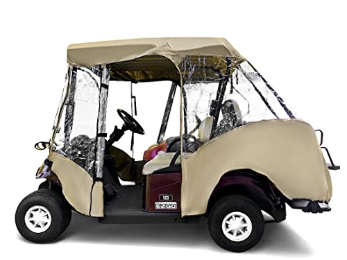 Featuring a strong YKK door zipper that is the sturdiest on the market, this golf cart enclosure cover makes it easy to zip yourself in and out of the enclosure and is better suited for daily use. Additionally, it has commercial grade front and rear window zippers that you can un-zip and roll up to use existing golf cart windshield. With a 1-year manufacturer's warranty, you can trust in the quality of this product.