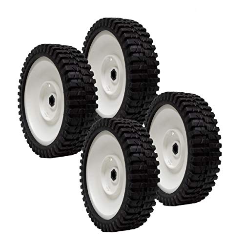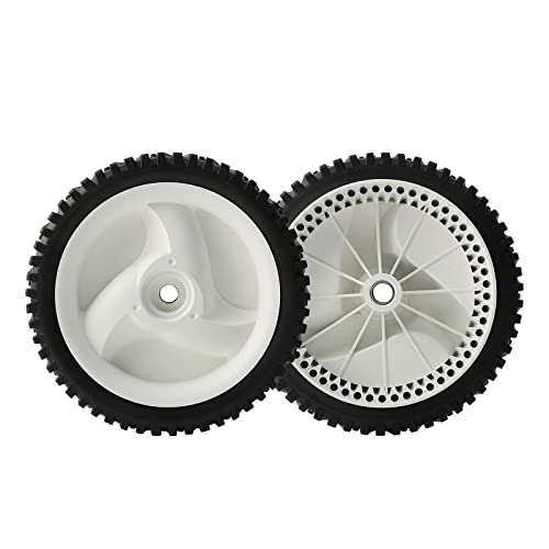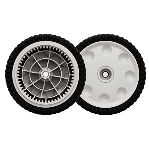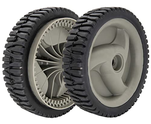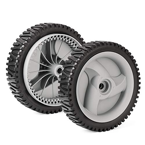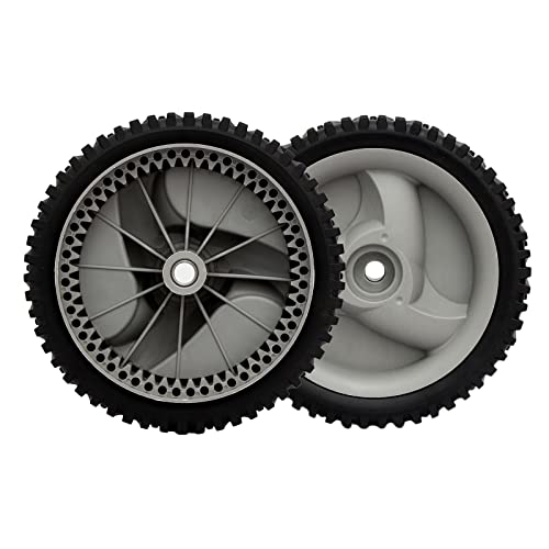 Designed to replace multiple OEM part numbers, including 532193144, 532193444, 532700953, 194231X427, 194231×460, 532403111, 532194231, 583104401, 583719501, 181469, and 180658, these wheels are compatible with various mower models. Specifically, they fit the Craftsman 917376080 6.5 horsepower power-propelled 22" multi-cut and 917371600 lawn mower models.