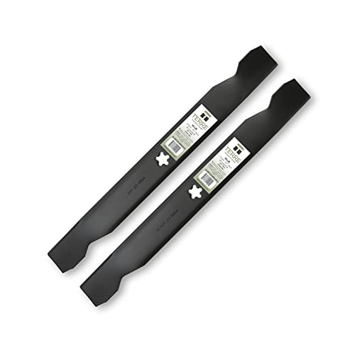 Introducing the 2-Pack Toothed Mulching Blades, a high-quality replacement for damaged or worn-out blades of various lawn mowers. These blades boast dimensions of 21 inches in length, 2.5 inches in width, and 0.197 inches in thickness. They feature a 5-point star center hole that ensures secure attachment to the mower. These blades are compatible with 42" decks of different brands and models, including Poulan and Husqvarna.