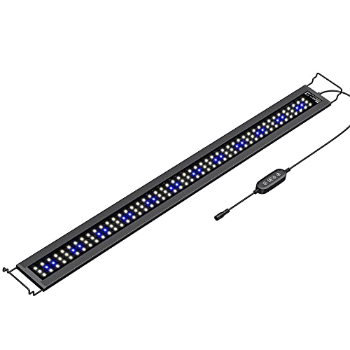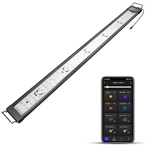 Ideal for freshwater planted tanks between 48"-55", provides full spectrum light with app control, adjustable timer, and 24/7 lighting cycle.