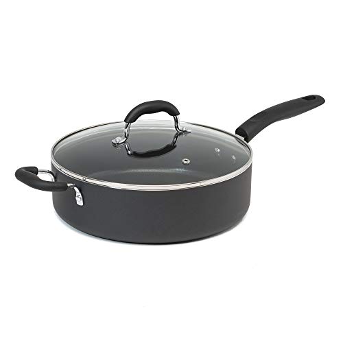 4. Rachael Ray 87631-T Cucina Hard-Anodized Nonstick Saute Pan with Lid: This saute pan is made with hard-anodized aluminum for durability and even heating. It has a nonstick interior for easy food release and comes with a shatter-resistant glass lid. It is oven safe up to 400 degrees Fahrenheit.