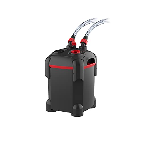 The BYKAELER canister filter is a powerful filtration system designed to keep your aquarium clean and healthy. Equipped with a UV light and 3-stage filtration process, the filter removes odors, discoloration, and water impurities. The filter foam pads effectively screen out dirt and debris, providing optimal water quality for your fish.