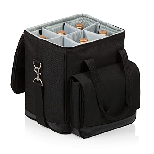 The Cellar insulated 6-bottle wine carrier by Legacy, a Picnic Time brand, is the perfect accessory for wine lovers who are always on the go. It features a durable ripstop polyester exterior in solid black with a water-resistant PVC base that not only looks sleek but also offers reliable protection for your bottles of wine. The fully insulated interior ensures that your wine stays at the right temperature during transport.