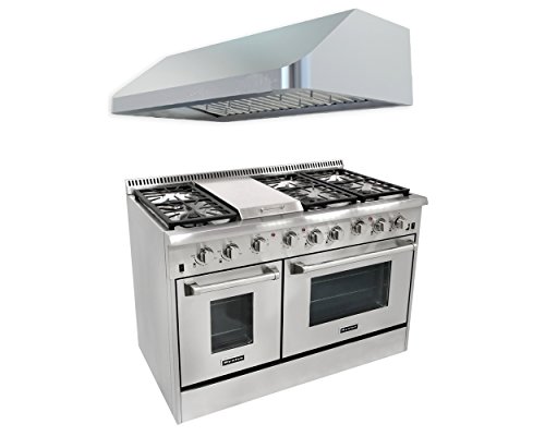 The Thor Kitchen HRH4806U 48" Stainless Steel Under Cabinet Range Hood complements the gas range perfectly. Measuring at W 48" / D 22" / H 10" and weighing 150 lb., it is designed to fit perfectly under standard kitchen cabinets. It also features powerful suction and LED lights for a clear view of the cooktop.
