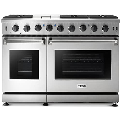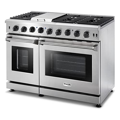 9. Thor Kitchen Lrg4807u Pro-Style Gas Range With 6 Burners And Double Ovens, 48 Inch, Stainless Steel