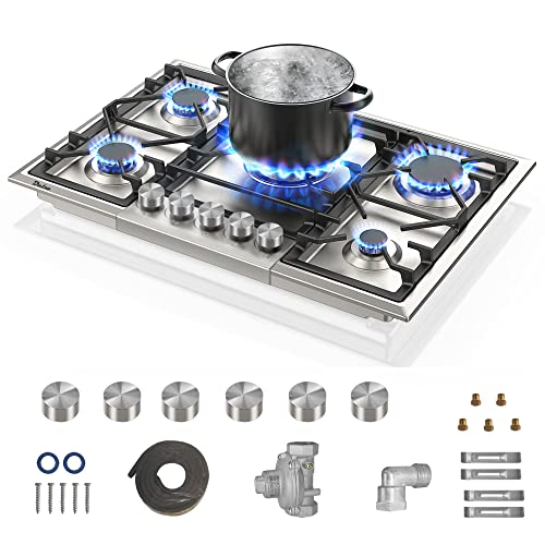 This cooktop is versatile and can be used with either natural gas or propane. If you want to convert from natural gas to propane, simply remove the factory-installed 5 NG nozzles and install LPG nozzles. This makes upgrading your older drop-in gas stove to the Dalxo 30" Gas Cooktop a breeze.