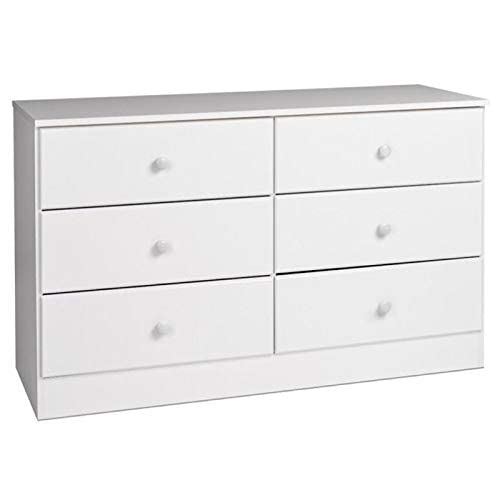 5. Prepac Astrid 6 Drawer Double Dresser For Bedroom, 16" D X 47.25" W X 28.25" H, White