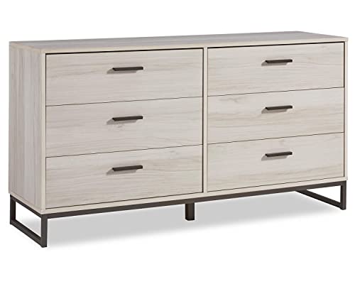 2. Signature Design By Ashley Socalle Modern Industrial 6 Drawer 54" Dresser, Natural Beige