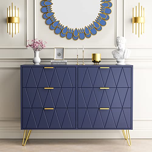 With six spacious drawers, this modern double dresser provides ample storage space for all your belongings, keeping you organized and tidy. It is designed with storage and style in mind, making it a multi-functional piece that can be used in any room of your home. Whether you need to store clothes, linens, or any other items, this double dresser has got you covered.