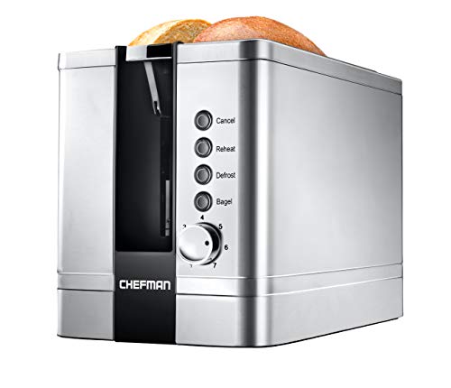 Upgrade your toasting game with the Chefman 2 Slice Pop-Up Toaster. Its modern yet classic brushed stainless-steel exterior adds a timeless touch to any kitchen countertop. With 7 different shade settings, as well as bagel, reheat, and defrost functions, this toaster offers customizable options for all your toasting needs.