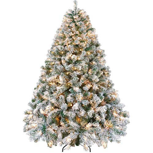 2. Snow-Flocked Pre-Lit Christmas Tree With Warm Lights.