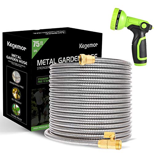 Introducing the kegemor metal hose, a durable and reliable option for all your watering needs. Made from industrial grade heavy duty 304 stainless steel, this hose is rust-proof, UV-resistant, and lightweight, making it easy to maneuver around tight corners, trees, and other obstacles. The unique design is extremely flexible, and the hose comes equipped with brass shut-off valves for easy water control without the need to turn off the tap.