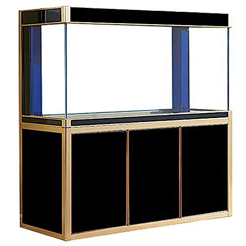 The fish tank's black with gold trim design is the most fashionable design in 2021. Every detail reflects the modern design concept, and you can clearly see each aquatic plant. The pet fish swims gracefully in front of you, providing a better immersive experience. It offers a luxurious home for your pet water creatures to hide and relax. The product weighs 391lb, with a water total actual capacity of 175 gallons.