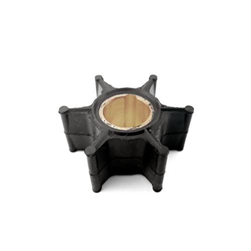 Crafted with neoprene and brass materials, this Water Pump Impeller comes with six blades and measures 12.8mm in shaft size, 38.4mm in external diameter, and 17.9mm in thickness. This replacement impeller is specifically designed to fit Johnson Evinrude OMC Outboard 8HP, 9.9HP, and 15HP Boat Motors Engine Cooling System.